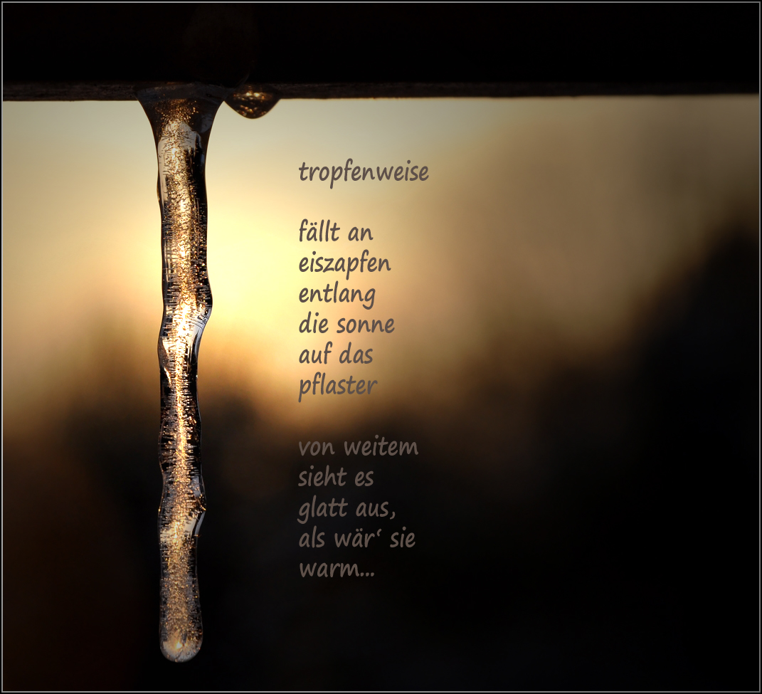 Gota a gota deslizando sobre el hielo el sol se desploma sobre el asfalto Desde lejos hasta tiene el aspecto de ser cálido...